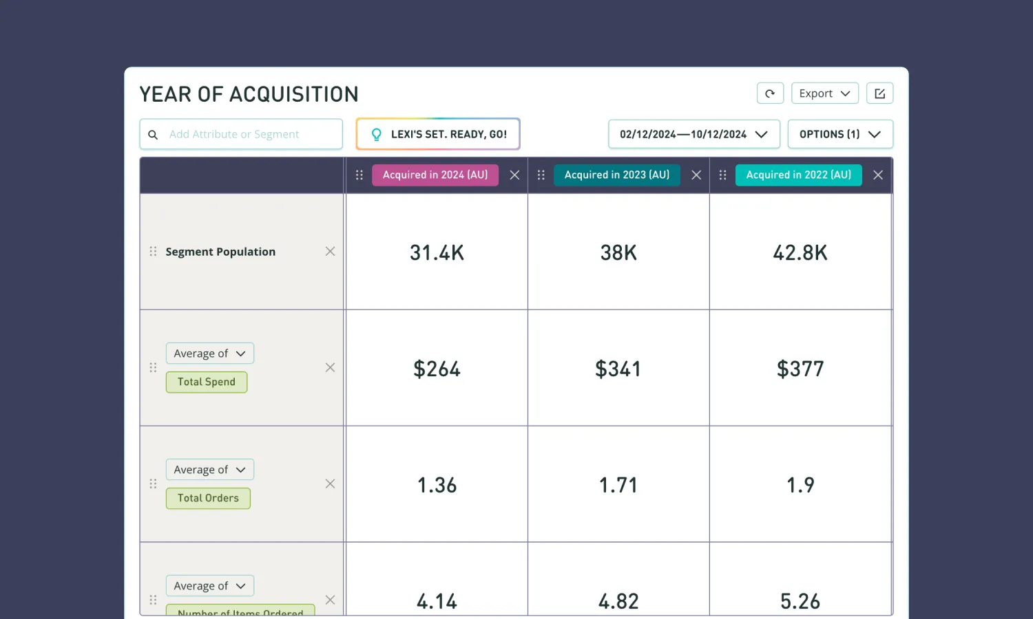 Track how your acquisition efforts are impacting customer lifetime time value year on year. Understand which year drove the most new customers, but also-more importantly-which year drove the best customers.