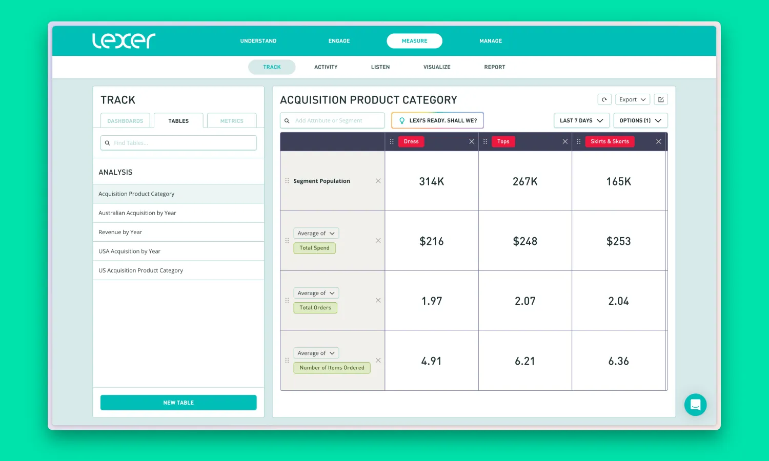 Understanding your customer segments is crucial for making informed business decisions. This guide walks you through five popular Lexer Track Tables that help you unlock deeper insights into your segments, and track customer behavior.