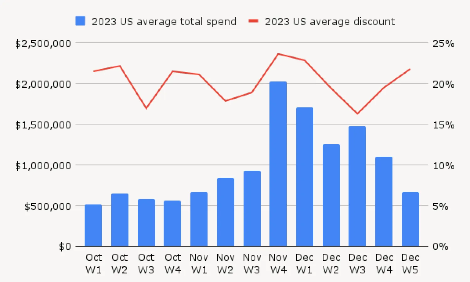 US retailers offered higher discounts than previous years - with the most seen during BFCM and the last week before Christmas.