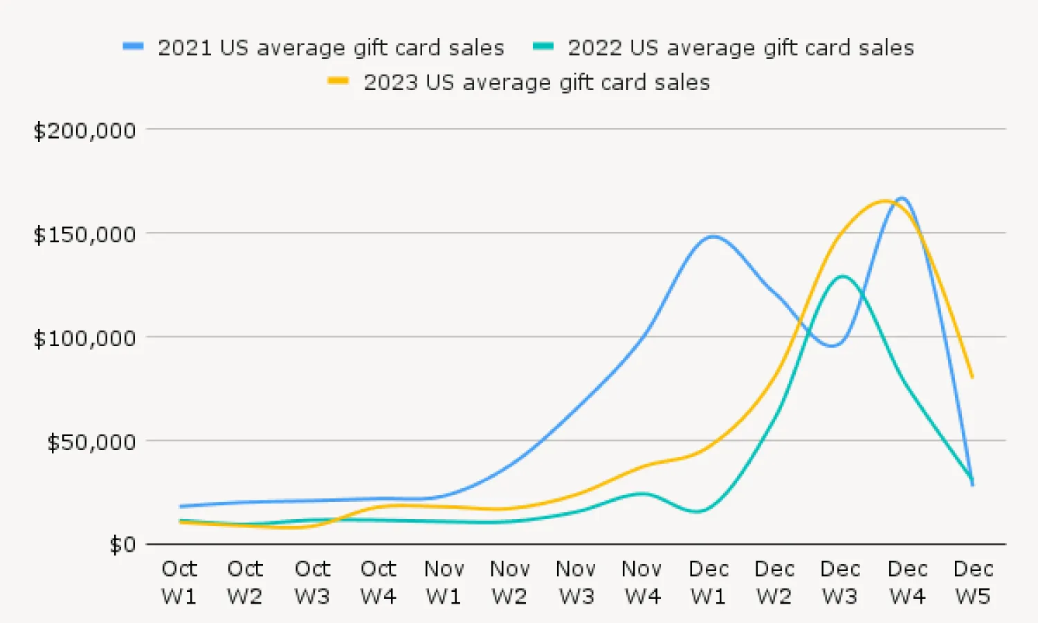 Gift card sales increased 57% compared to 2022, peaking in the final days before Christmas.