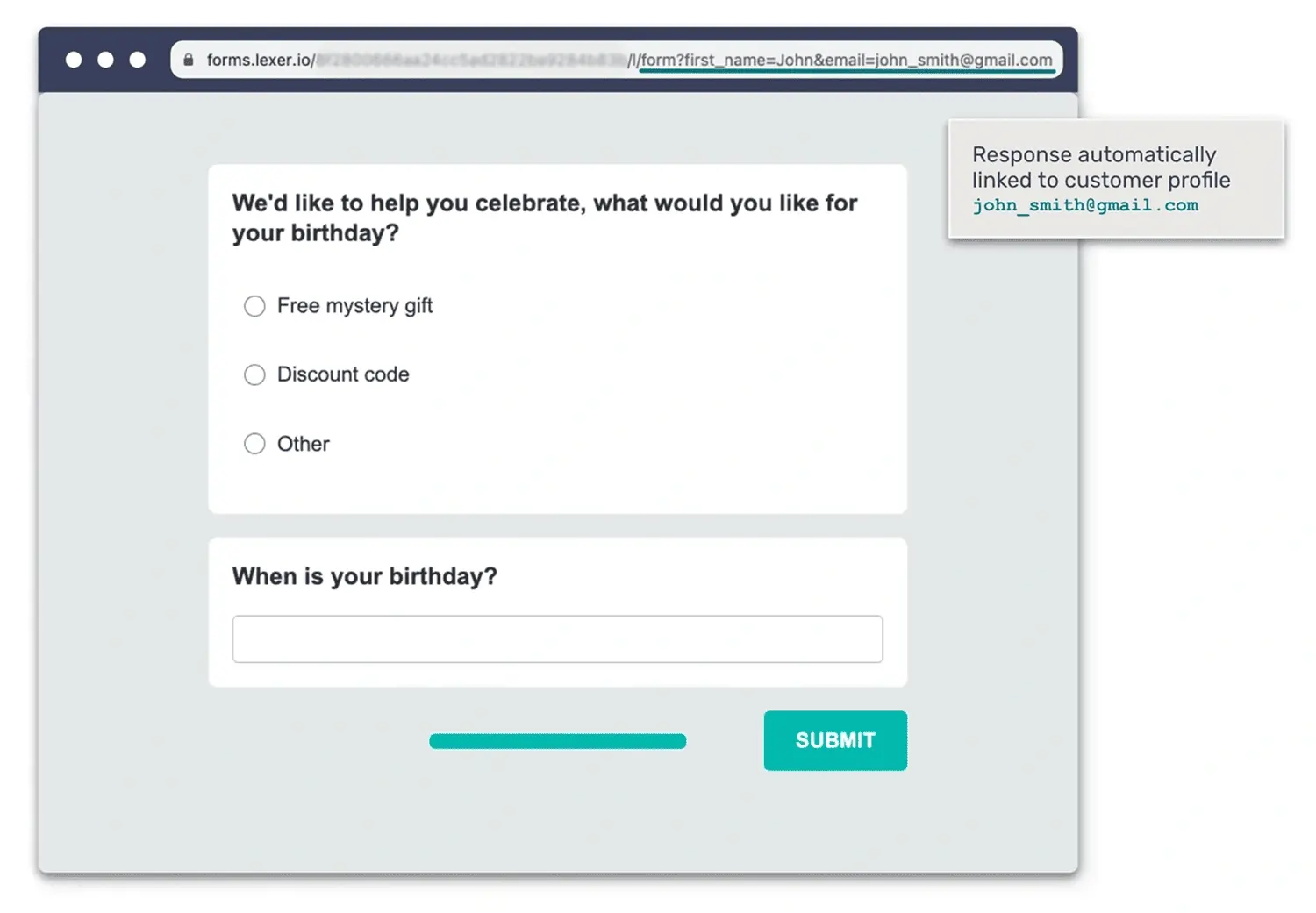We're excited to unveil a new Lexer Forms feature that further enhances customer engagement: Pre-filled Fields. This innovation automatically links customers to their profiles, and can automatically populate surveys with data from your CDXP, creating a seamless and personalised experience. It's an effective way to ensure accuracy and data quality. Discover how to pre-fill form details with hidden fields.