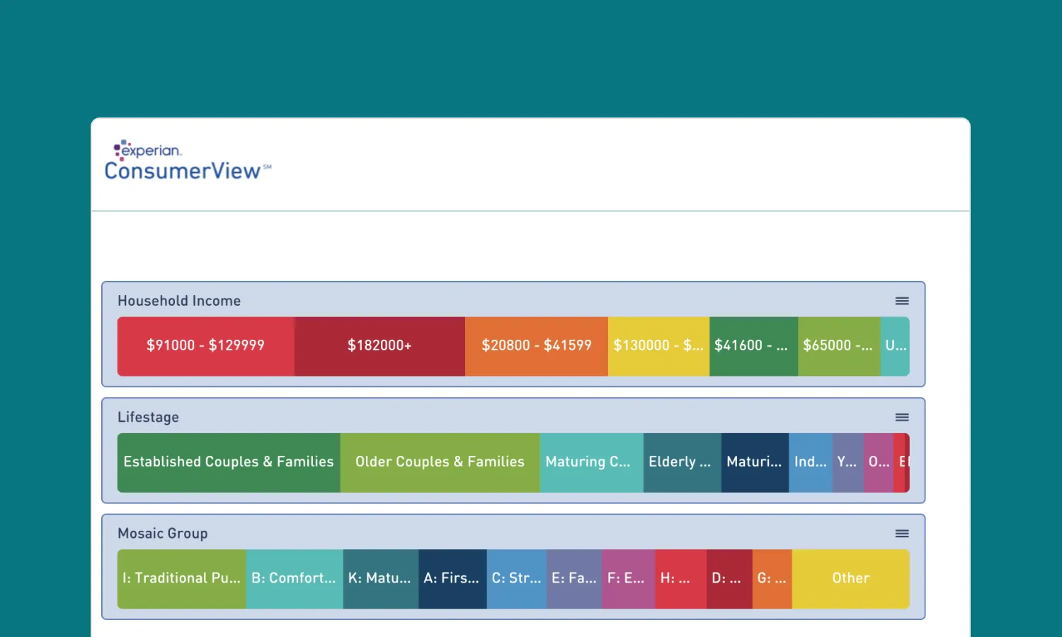 Enrich your customer profiles with the latest demographic, household, and lifestage insights thanks to our ongoing partnership with Experian (ConsumerView, Mosaic, Grand Index). Including the new and improved Mosaic Australia rebuild.